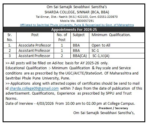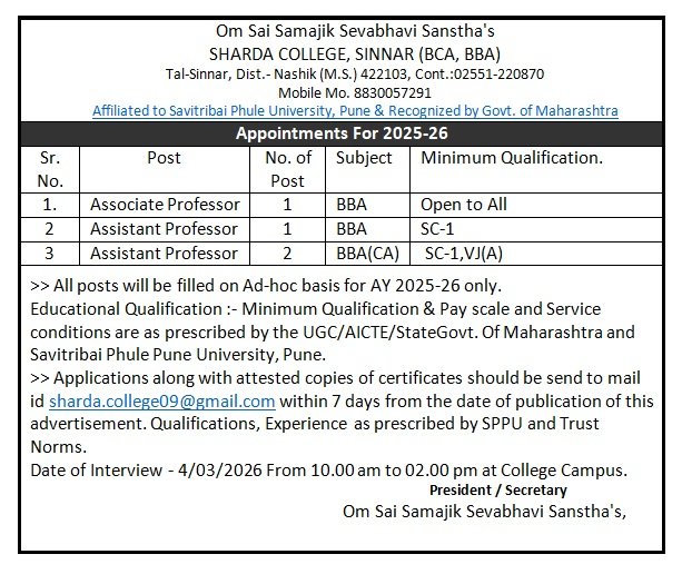 Welcome to Sharda College BBA, BBA(CA), sinnar